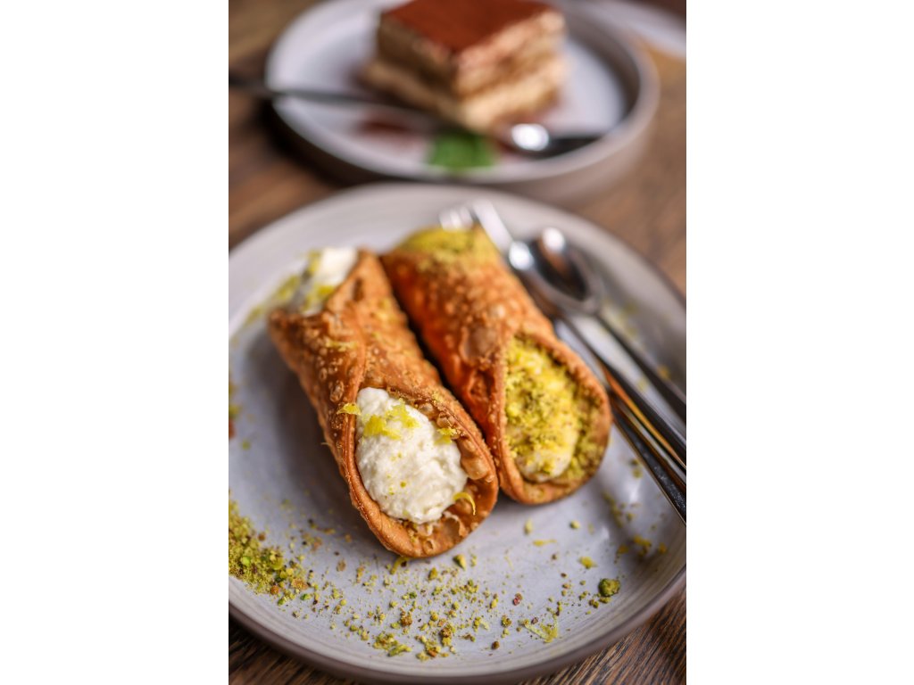 Cannoli siciliani - smažené trubičky plněné ricottou s pistáciemi