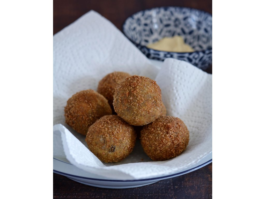 Arancini - smažené koule z šafránového rizota plněné krevetou